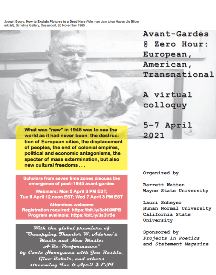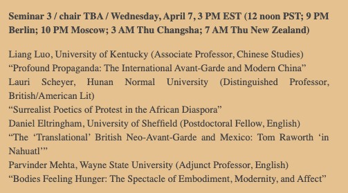 What *was* the deal with Tom Raworth & Mexico? For those who’ve pondered that niche w/in a niche: I’m speaking on ‘Tom Raworth “in Nahuatl”‘ at “Avant-Gardes @ Zero Hour: European, American, Transnational“, 5-7 April (7th April 8pm BST). Four panels in total, take a look at the programme here. Thanks to Barrett Watten & Lauri Scheyer for organising. Register. FB event here.